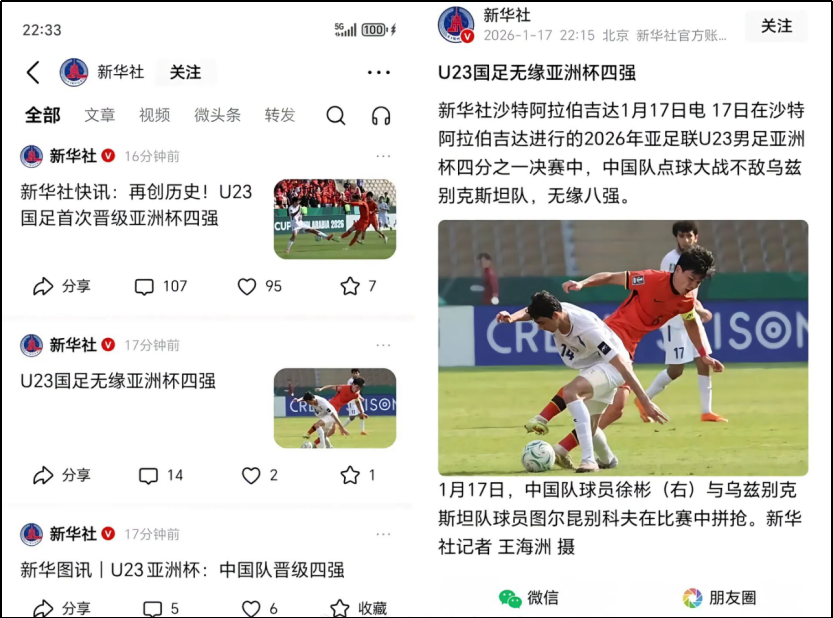 最近国足打进了U23亚洲杯决赛了。