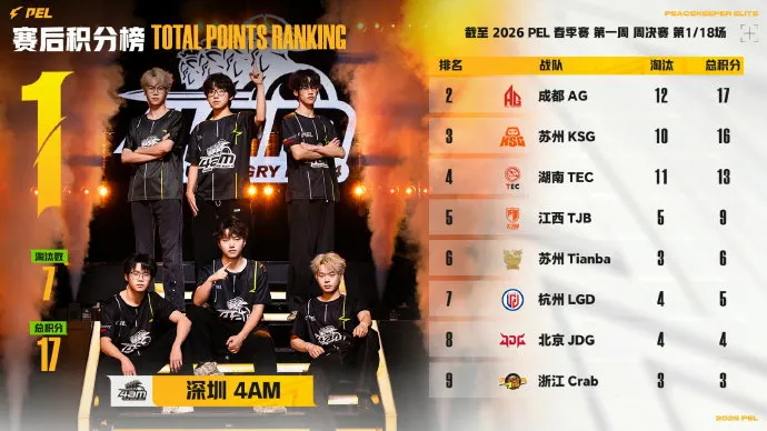 决胜时刻,信号圈缩在材料厂附近,圈内剩余成都AG战队、苏州KSG战队和深圳4AM战队,此时场上4v4v4。三队发生混战,一波人员互换后,AG战队先被淘汰出局,随后剩余两队展开对战,最终4AM战队凭借默契配合将KSG战队逐个击破拿下比赛,恭喜深圳4AM战队获得本场比赛胜利。