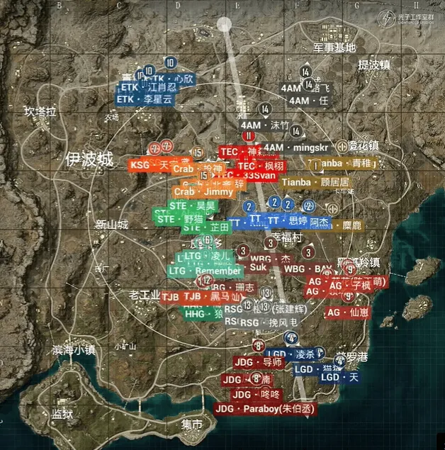 决胜时刻,信号圈缩在战地医院附近,圈内剩余北京JDG战队、青岛HHG战队和南京LTG战队,此时场上3v1v2。HHG战队独狼先被北京JDG战队淘汰出局,随后剩余两队展开对战,最终JDG战队凭借默契配合接连收下LTG战队拿下比赛,恭喜北京JDG和平精英分部获得本场比赛胜利