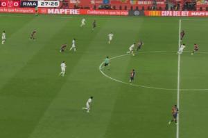 国王杯决赛,巴萨3-2击败皇马捧杯。比赛中的第一球,贝林厄姆传球被库巴西拦截,佩德里长传发动反击并前插远射破门。这粒进球过程中留下了贝林厄姆在佩德里面前抱头的“名场面”。